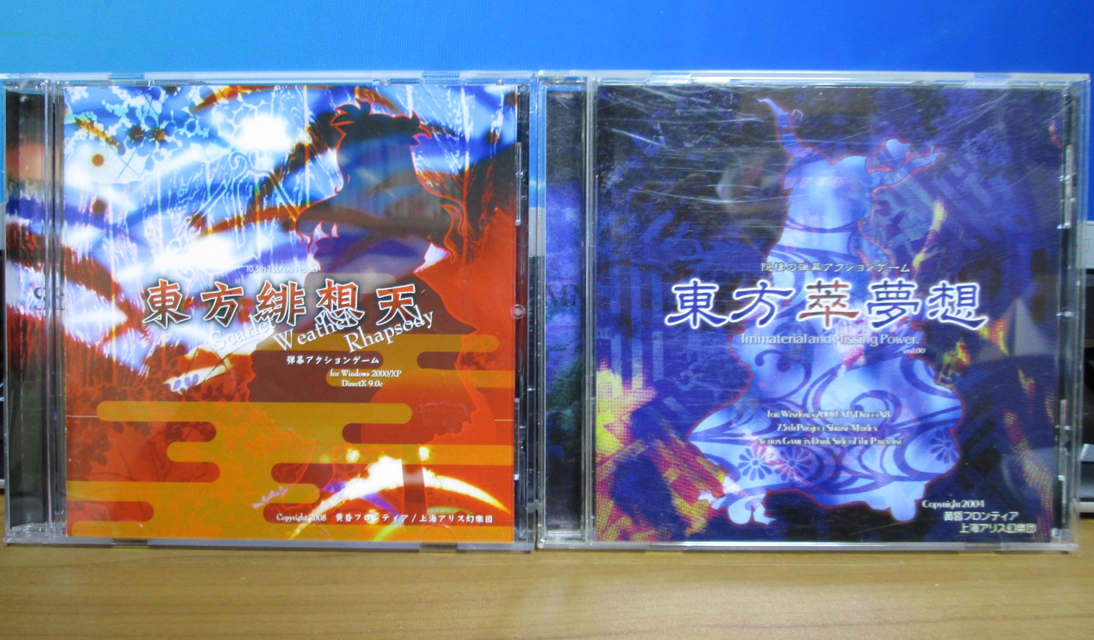 帯なし、ディスク小キズ。緋想天900円 萃夢想800円です。帯付き美品なら1200円と1000円になります。