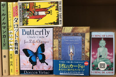 定番のライダータロット、ドリーン・バーチュー氏のオラクルカード、タロットの教科書など。