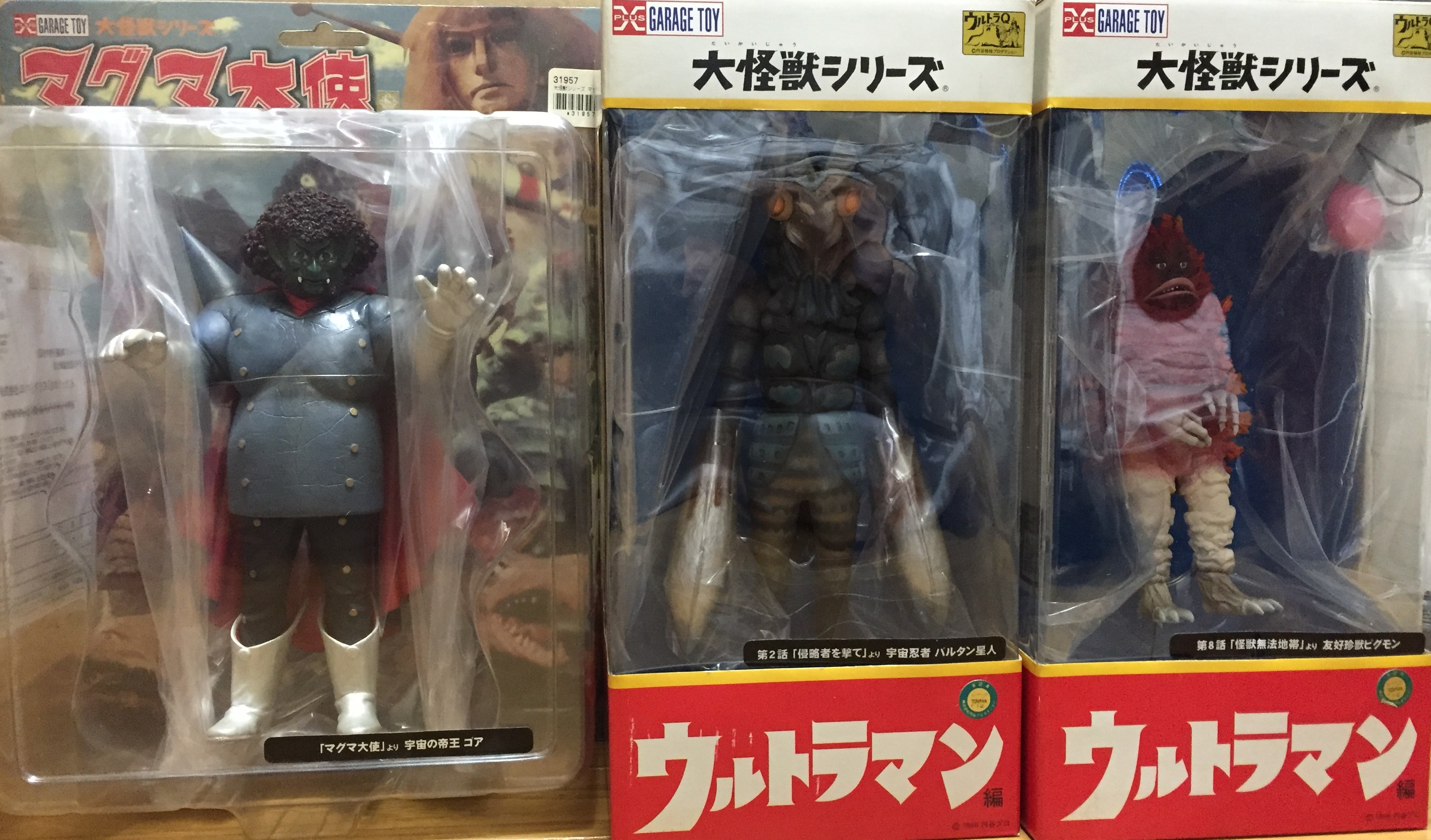 バルタン星人、ピグモン、宇宙の帝王ゴアの3体。全て未開封の良品です。