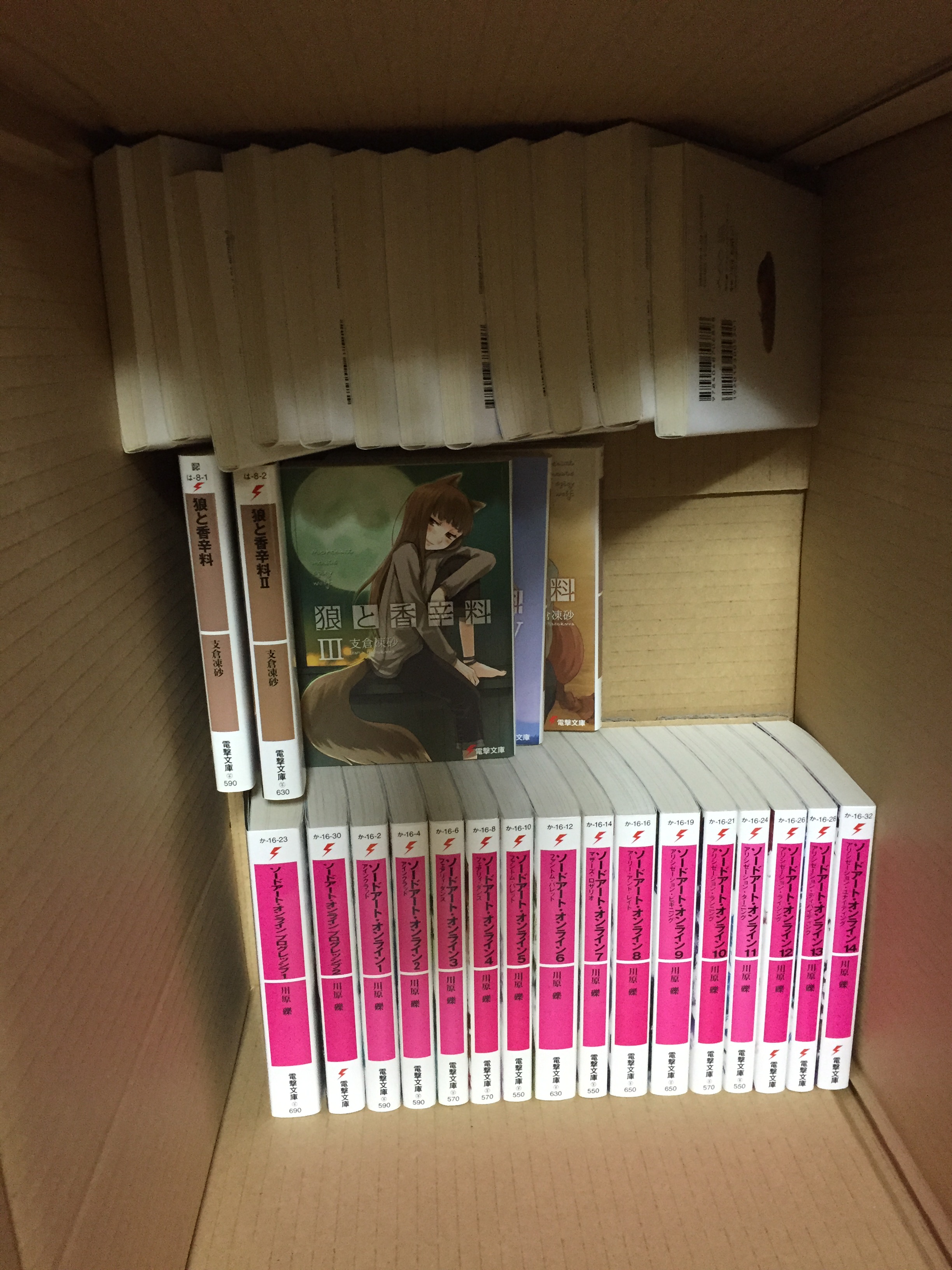 ソードアートオンライン、狼と香辛料完結セットなど。これらも人気作ですね。