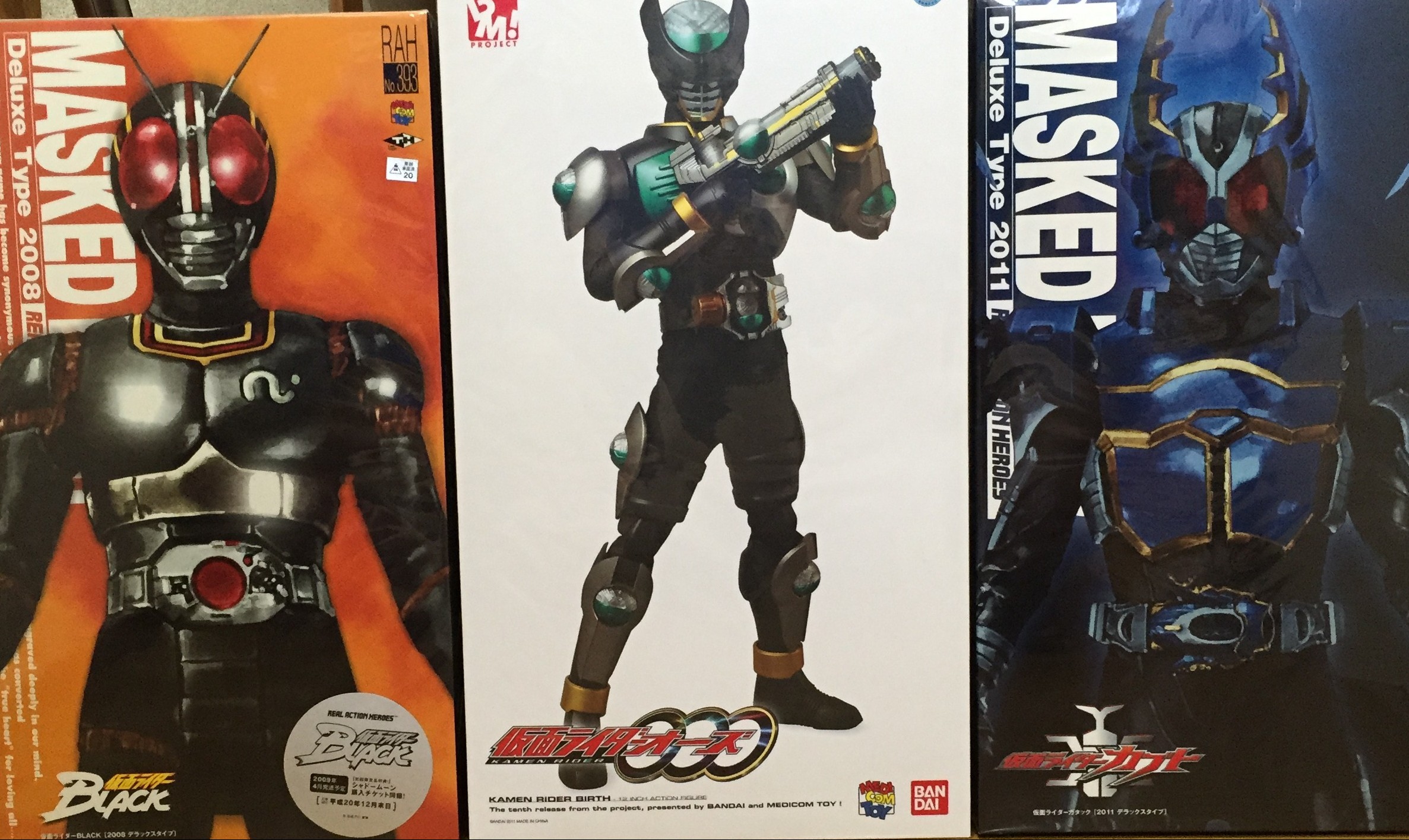 メディコムトイのRAHとPBM!シリーズ、仮面ライダーブラック、オーズ、カブトですね。