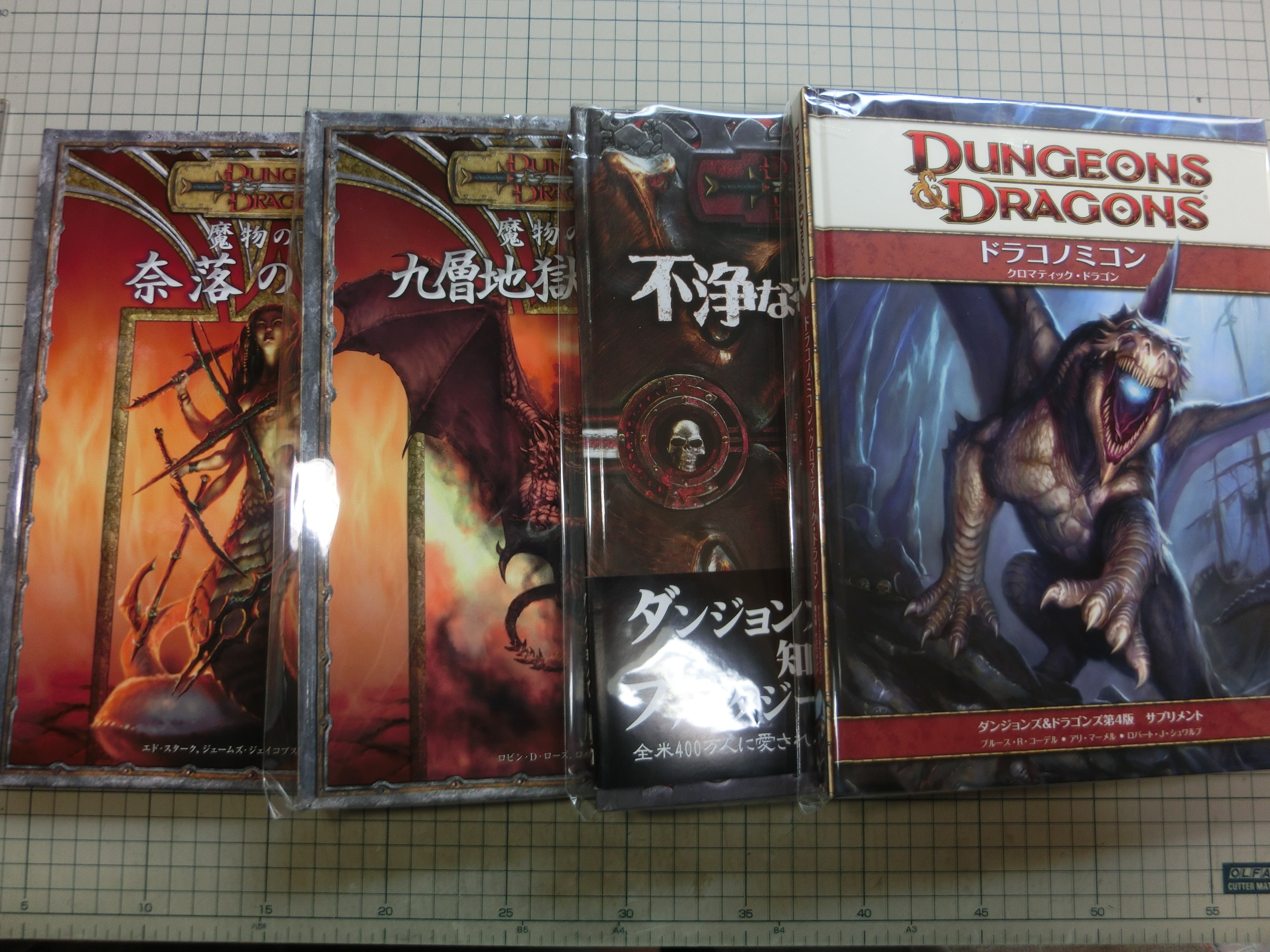 魔物の書1、2と不浄なる暗黒の書、4版のドラコノミコン(クロマティックドラゴン)の4冊です。