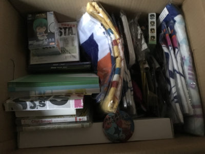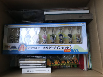 こんな感じでダンボールに3箱ほどアニメグッズやCDやDVDを買取させていただきました。