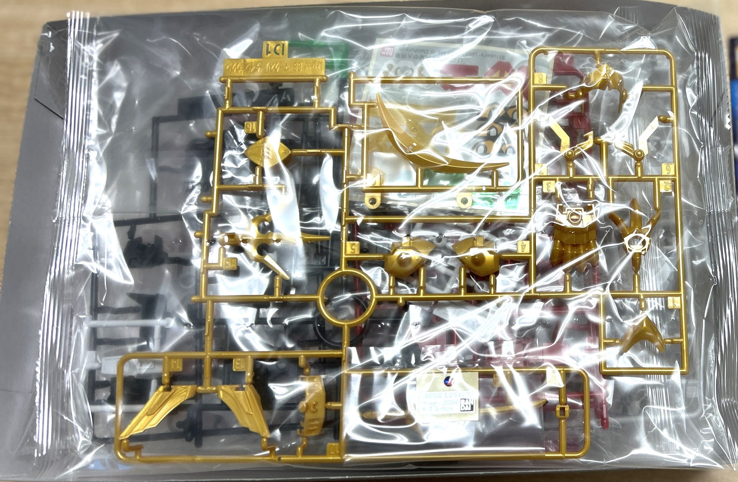 各種デカールなど。兜の一部はメッキ加工されています。