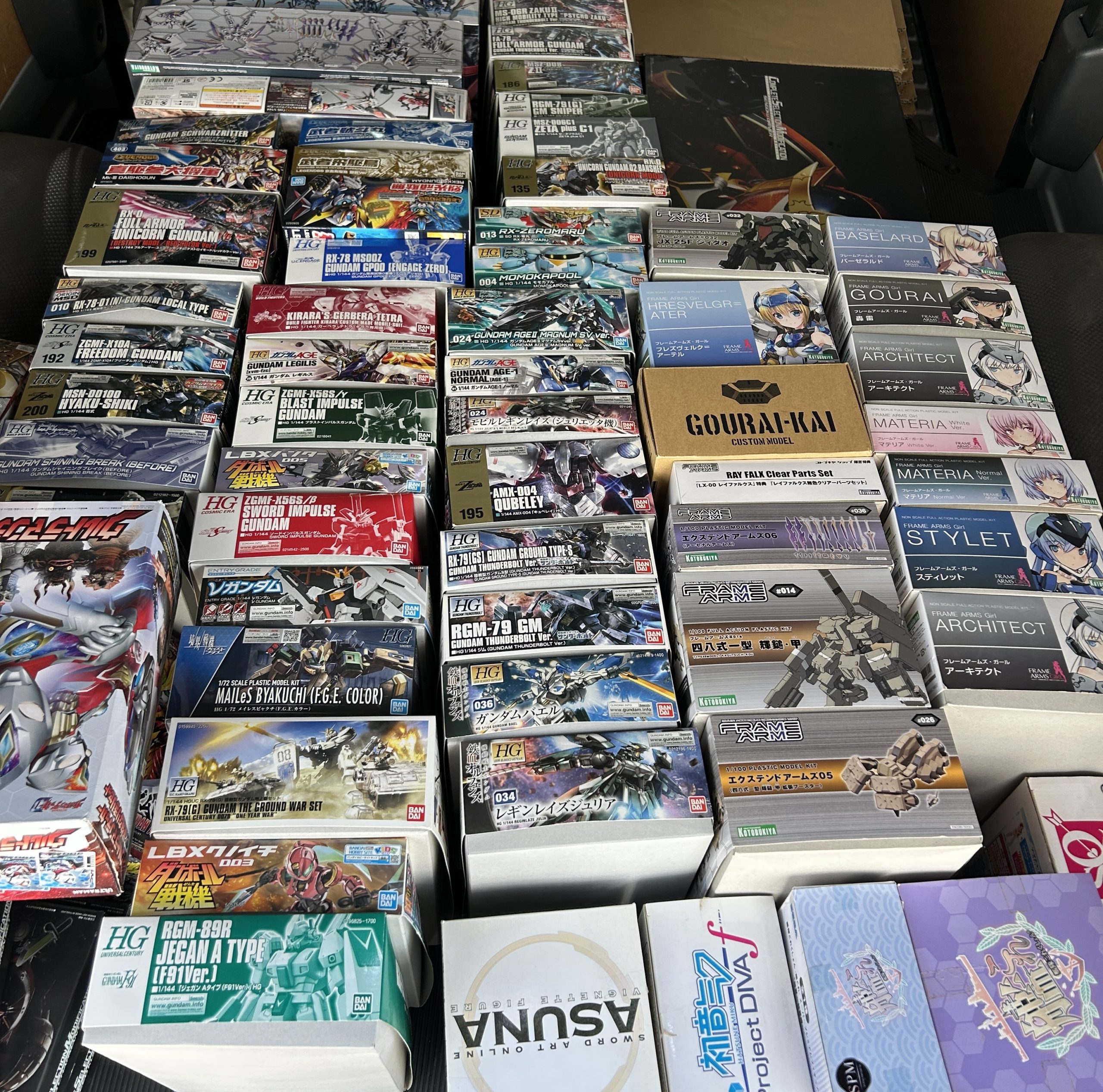 ガンプラ、フレームアームズなど定番のプラモデルが60点少々、CSMが数点、フィギュアが数点。