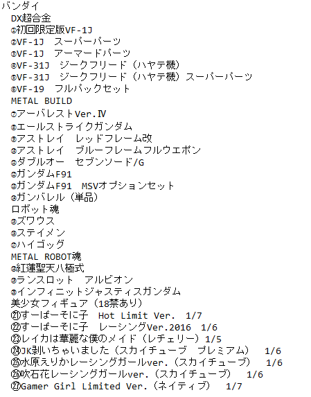 数年~10年ほど前のコレクションでしょうか。プレミアムバンダイ限定、METAL BUILD、美少女など。