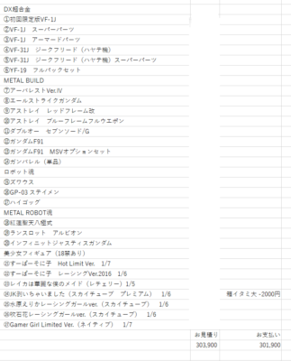 今回のフィギュア買取明細は以下の通りです。