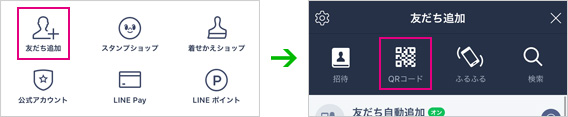 その他 > 友だち追加 > QRコードをタップして、QRコードリーダーを起動します。